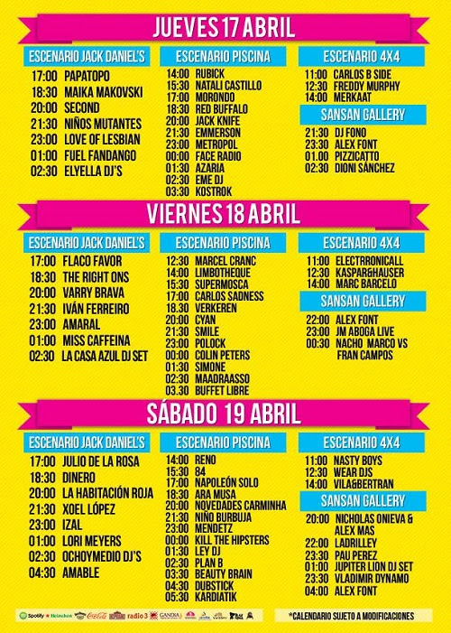 Ya entrados en la primavera y con muchas ganas de recibir el primer y único festival con música indie, pop-rock y electrónica en la festividad de Pascua en Gandia los próximos días 17, 18 y 19 de abril.